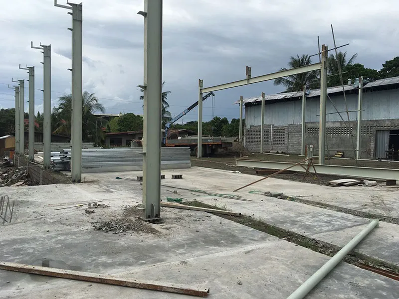 مؤخرًا، قام أحد عملائنا في الفلبين بشراء مستودع بهيكل فولاذي بمساحة 912 م². ومع ذلك، حدث خطأ أثناء إنشاء الأساس. حيث لم يعتمد تصميم المستودع تباعدًا موحدًا بين الأعمدة من المركز إلى المركز، بينما قام العميل بتنفيذ أساسات الأعمدة على أساس مسافات متساوية بين المراكز. وإذا تم التركيب وفقًا لما تم تنفيذه، فسيكون طول العارضتين الطرفيتين أقل من المطلوب، كما أنه لن تتطابق مكونات السقف والجدران وقضبان الربط مع الأبعاد التصميمية.